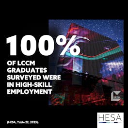 Upon graduation, you will leave LCCM as an all-round, musically literate individual, equipped with the skills, theoretical knowledge, and networks needed to develop a lasting career as a professional composer for film, TV, games, and other media